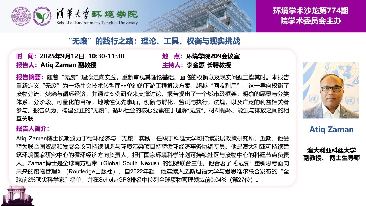 报告题目:“无废”的践行之路:理论、工具、权衡与现实挑战
